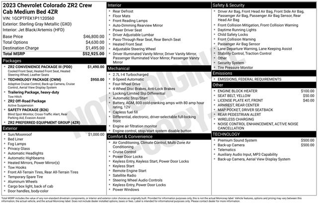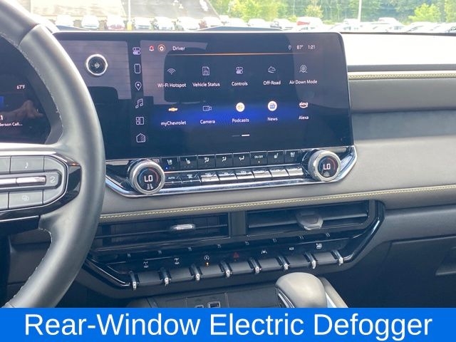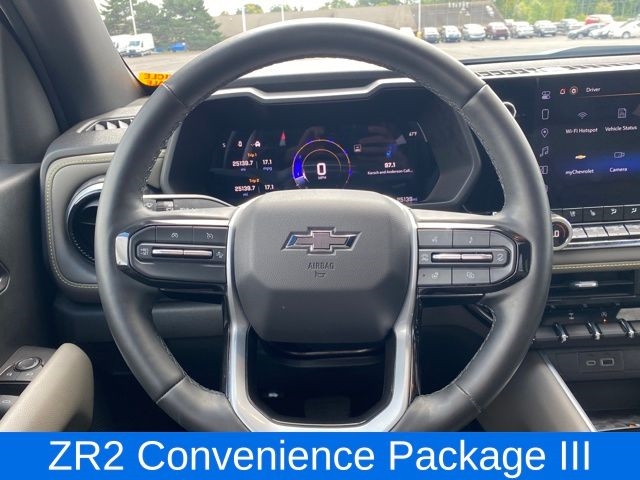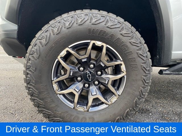 Adaptive Cruise Control, Apple CarPlay/Android Auto, Blind Zone Steering Assist, Chevy Safety Assist, Driver & Front Passenger Ventilated Seats, Driver Memory Settings, Driver Seatback Map Pocket, Electronic Automatic Cruise Control, HD Surround Vision, Heated Steering Wheel, Navigation System, Perforated Leather-Appointed Seat Trim, Preferred Equipment Group 4ZR, Rear Center Armrest, Rear Cross Traffic Braking, Rear Park Assist, Rear Pedestrian Alert, Rear-Window Electric Defogger, Safety Package, Technology Package, Wireless Charging, ZR2 Convenience Package III, ZR2 Off-Road Package, 3.42 Rear Axle Ratio, 4-Way Manual Passenger Seat Adjuster, 4-Wheel Disc Brakes, 6 Speakers, 6-Speaker Audio System Feature, 8-Way Power Driver Seat Adjuster, ABS brakes, Air Conditioning, Alloy wheels, AM/FM radio: SiriusXM, Auto High-beam Headlights, Auto-dimming Rear-View mirror, Automatic Emergency Braking, Automatic temperature control, Bose Premium 7-Speaker Audio System Feature, Brake assist, Cloth/Evotex Seat Trim, Compass, Delay-off headlights, Driver door bin, Driver vanity mirror, Dual front impact airbags, Dual front side impact airbags, Electronic Stability Control, Engine Block Heater, Following Distance Indicator, Forward Collision Alert, Front anti-roll bar, Front Bucket Seats, Front Center Armrest, Front dual zone A/C, Front fog lights, Front License Plate Kit, Front Pedestrian & Bicyclist Braking, Front reading lights, Front wheel independent suspension, Heated door mirrors, Heated Driver & Front Passenger Seats, Heated front seats, Illuminated entry, IntelliBeam Automatic High Beam On/Off, Lane Keep Assist w/Lane Departure Warning, Low tire pressure warning, Occupant sensing airbag, Outside temperature display, Overhead airbag, Overhead console, Panic alarm, Passenger door bin, Passenger Seatback Map Pocket, Passenger vanity mirror, Power door mirrors, Power Driver Lumbar Control Seat Adjuster, Power driver seat, Power Sliding Glass w/Manual Shade Sunroof, Power steering, Power windows, Radio data system, Radio: 11.3" Diagonal Advanced Color LCD Display, Rear reading lights, Rear step bumper, Rear window defroster, Remote keyless entry, Security system, SiriusXM Radio, Speed control, Speed-sensing steering, Split folding rear seat, Steering Wheel Mounted Audio Controls, Steering wheel mounted audio controls, Tachometer, Telescoping steering wheel, Tilt steering wheel, Traction control, Trip computer, Underbody Cameras, Variably intermittent wipers, Wheels: 17" x 8" Graphite & Oxide Gold Aluminum, Wireless Phone Projection, Yellow Seat Belt, One Owner Clean Carfax, Adaptive Cruise Control, Apple CarPlay/Android Auto, Blind Zone Steering Assist, Chevy Safety Assist, Driver & Front Passenger Ventilated Seats, Driver Memory Settings, Driver Seatback Map Pocket, Electronic Automatic Cruise Control, HD Surround Vision, Heated Steering Wheel, Navigation System, Perforated Leather-Appointed Seat Trim, Preferred Equipment Group 4ZR, Rear Center Armrest, Rear Cross Traffic Braking, Rear Park Assist, Rear Pedestrian Alert, Rear-Window Electric Defogger, Safety Package, Technology Package, Wireless Charging, ZR2 Convenience Package III, ZR2 Off-Road Package.