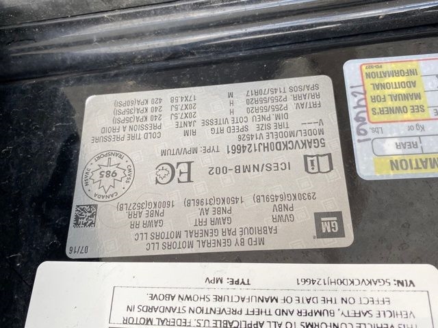 4500lbs Trailering Package, Articulating Headlights, Bose Sound System, Experience Buick Package, Exterior Parking Camera Rear, Forward Collision Alert & Lane Departure Warning, Heated & Cooled Driver & Front Passenger Seats, Navigation System, NavTraffic, Power Liftgate, Power Tilt & Telescopic Steering Column, Power Tilt-Sliding Moonroof, Power-Folding Heated Body-Color Outside Mirrors, Preferred Equipment Group 1SN, Premium Package, Radio: Color Touch AM/FM/CD/Nav w/IntelliLink, Speed control, Wheels: 20" Bright-Machined Aluminum, 10 Speakers, 3.16 Axle Ratio, 3rd row seats: split-bench, 4-Wheel Disc Brakes, 7-Passenger Seating, ABS brakes, Air Conditioning, Alloy wheels, AM/FM radio: SiriusXM, Auto tilt-away steering wheel, Auto-dimming door mirrors, Auto-dimming Rear-View mirror, Automatic temperature control, Bose Performance-Enhanced 10-Speaker System, Brake assist, Bumpers: body-color, CD player, Compass, Delay-off headlights, Driver door bin, Driver vanity mirror, Dual front impact airbags, Dual front side impact airbags, Electronic Stability Control, Emergency communication system: OnStar Guidance, Four wheel independent suspension, Front anti-roll bar, Front Bucket Seats, Front Center Armrest w/Storage, Front dual zone A/C, Front reading lights, Fully automatic headlights, Garage door transmitter, Heated door mirrors, Heated front seats, Heated steering wheel, High intensity discharge headlights: Bi-Xenon, Illuminated entry, Leather steering wheel, Low tire pressure warning, Memory seat, Occupant sensing airbag, Outside temperature display, Overhead airbag, Panic alarm, Passenger door bin, Passenger vanity mirror, Perforated Leather-Appointed Seat Trim, Power door mirrors, Power driver seat, Power passenger seat, Power steering, Power windows, Radio data system, Rear air conditioning, Rear anti-roll bar, Rear audio controls, Rear Audio System Controls, Rear Parking Sensors, Rear reading lights, Rear window defroster, Rear window wiper, Remote keyless entry, Roof rack: rails only, Security system, Speed-sensing steering, Spoiler, Steering wheel memory, Steering wheel mounted audio controls, Tachometer, Telescoping steering wheel, Tilt steering wheel, Traction control, Trip computer, Turn signal indicator mirrors, Variably intermittent wipers, Ventilated front seats, Voltmeter, Wheels: 19" Chrome-Clad Cast Aluminum, 4500lbs Trailering Package, Articulating Headlights, Bose Sound System, Experience Buick Package, Exterior Parking Camera Rear, Forward Collision Alert & Lane Departure Warning, Heated & Cooled Driver & Front Passenger Seats, Navigation System, NavTraffic, Power Liftgate, Power Tilt & Telescopic Steering Column, Power Tilt-Sliding Moonroof, Power-Folding Heated Body-Color Outside Mirrors, Preferred Equipment Group 1SN, Premium Package, Radio: Color Touch AM/FM/CD/Nav w/IntelliLink, Speed control, Wheels: 20" Bright-Machined Aluminum.