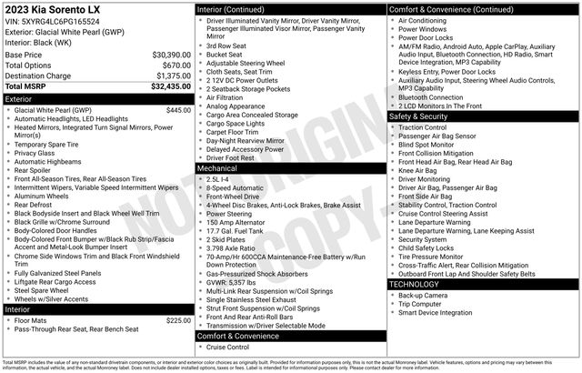 3.798 Axle Ratio, 3rd row seats: split-bench, 4-Wheel Disc Brakes, 6 Speakers, 7.0J x 17" Alloy Wheels, ABS brakes, Air Conditioning, Alloy wheels, AM/FM radio, Apple CarPlay & Android Auto, Auto High-beam Headlights, Brake assist, Bumpers: body-color, Carpet Floor Mats, Cloth Seat Trim, Delay-off headlights, Driver door bin, Driver vanity mirror, Dual front impact airbags, Dual front side impact airbags, Electronic Stability Control, Exterior Parking Camera Rear, Four wheel independent suspension, Front anti-roll bar, Front Bucket Seats, Front Center Armrest, Front reading lights, Fully automatic headlights, Heated door mirrors, Illuminated entry, Knee airbag, Low tire pressure warning, Occupant sensing airbag, Outside temperature display, Overhead airbag, Overhead console, Panic alarm, Passenger door bin, Passenger vanity mirror, Power door mirrors, Power steering, Power windows, Radio data system, Radio: AM/FM Audio System, Rear anti-roll bar, Rear reading lights, Rear seat center armrest, Rear window defroster, Rear window wiper, Remote keyless entry, Security system, Speed control, Speed-sensing steering, Split folding rear seat, Spoiler, Steering wheel mounted audio controls, Tachometer, Telescoping steering wheel, Tilt steering wheel, Traction control, Trip computer, Turn signal indicator mirrors, Variably intermittent wipers.