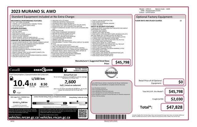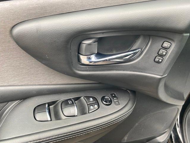 AM/FM/CD/MP3/WMA Audio System, Blind Spot Warning, Dual-Panel Moonroof, Exterior Parking Camera Rear, Heated Front Bucket Seats, Leather-Appointed Seat Trim, Navigation system: NissanConnect Navigation, NissanConnect featuring Apple CarPlay and Android Auto, Power Liftgate, Roof Rail Delete, SL Moonroof Package, Speed control, Wheels: 20" Machined Aluminum-Alloy, 11 Speakers, 4-Wheel Disc Brakes, 4.667 Axle Ratio, ABS brakes, Air Conditioning, Alloy wheels, AM/FM radio: SiriusXM, Auto High-beam Headlights, Auto-dimming Rear-View mirror, Automatic temperature control, Brake assist, Bumpers: body-color, CD player, Child-Seat-Sensing Airbag, Delay-off headlights, Driver door bin, Driver vanity mirror, Dual front impact airbags, Dual front side impact airbags, Electronic Stability Control, Four wheel independent suspension, Front anti-roll bar, Front Bucket Seats, Front Center Armrest, Front dual zone A/C, Front fog lights, Front reading lights, Fully automatic headlights, Garage door transmitter: HomeLink, Heated door mirrors, Heated rear seats, Heated steering wheel, Illuminated entry, Knee airbag, Low tire pressure warning, Memory seat, Occupant sensing airbag, Outside temperature display, Overhead airbag, Overhead console, Panic alarm, Passenger door bin, Passenger vanity mirror, Power door mirrors, Power driver seat, Power passenger seat, Power steering, Power windows, Radio data system, Rear anti-roll bar, Rear reading lights, Rear seat center armrest, Rear side impact airbag, Rear window defroster, Rear window wiper, Remote keyless entry, Security system, Speed-sensing steering, Speed-Sensitive Wipers, Split folding rear seat, Spoiler, Steering wheel mounted audio controls, Tachometer, Telescoping steering wheel, Tilt steering wheel, Traction control, Trip computer, Turn signal indicator mirrors, Variably intermittent wipers, ALL WHEEL DRIVE, AM/FM/CD/MP3/WMA Audio System, Blind Spot Warning, Dual-Panel Moonroof, Exterior Parking Camera Rear, Heated Front Bucket Seats, Leather-Appointed Seat Trim, Navigation system: NissanConnect Navigation, NissanConnect featuring Apple CarPlay and Android Auto, Power Liftgate, Roof Rail Delete, SL Moonroof Package, Speed control, Wheels: 20" Machined Aluminum-Alloy.
