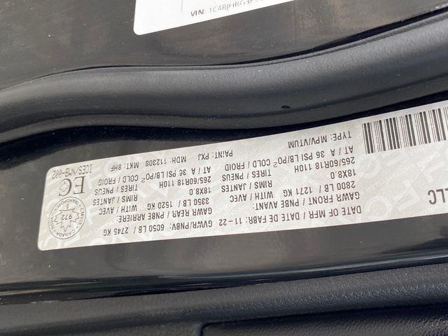 3.45 Rear Axle Ratio, 4-Wheel Disc Brakes, 6 Speakers, ABS brakes, Active Noise Control System, Air Conditioning, Alloy wheels, AM/FM radio: SiriusXM with 360L, Anti-whiplash front head restraints, Audio memory, Auto High-beam Headlights, Automatic temperature control, Brake assist, Bumpers: body-color, Capri Leatherette Seats, Compass, Delay-off headlights, Driver door bin, Driver vanity mirror, Dual front impact airbags, Dual front side impact airbags, Electronic Stability Control, Emergency communication system, Four wheel independent suspension, Front anti-roll bar, Front Bucket Seats, Front Center Armrest w/Storage, Front dual zone A/C, Front fog lights, Front reading lights, Fully automatic headlights, Garage door transmitter, Heated door mirrors, Heated front seats, Heated rear seats, Heated steering wheel, Illuminated entry, Knee airbag, Low tire pressure warning, Memory seat, Molded In Color Black/Gloss Black Roof Rails, Navigation System, Normal Duty Suspension, Occupant sensing airbag, Outside temperature display, Overhead airbag, Overhead console, Panic alarm, ParkView Rear Back-Up Camera, Passenger door bin, Passenger vanity mirror, Power door mirrors, Power driver seat, Power Liftgate, Power passenger seat, Power steering, Power windows, Quick Order Package 23E, Radio data system, Radio: Uconnect 5 Nav w/10.1" Display, Rear anti-roll bar, Rear reading lights, Rear window defroster, Rear window wiper, Remote keyless entry, Security system, Speed control, Speed-Sensitive Wipers, Split folding rear seat, Spoiler, Steering wheel mounted audio controls, Tachometer, Telescoping steering wheel, Tilt steering wheel, Traction control, Trip computer, Turn signal indicator mirrors, Variably intermittent wipers, Voltmeter, Wheels: 18" x 8" Fully Painted Aluminum.